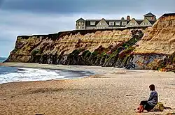 The city's infrastructure is heavily integrated with the coast, including the Pillar Point Harbor, major roads, and the fire department. The economy of Half Moon Bay is dominated by a handful of businesses, the biggest of which is the Ritz-Carlton Half Moon Bay which employs 500 people and is a major source of property tax and tourism income for the city.[8] Because of this geography, a 2022 study found that the city had over 123 buildings vulnerable to sea level rise.[8]
