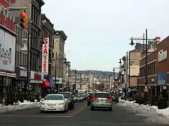 The Paterson Downtown Commercial Historic District is a 41-acre (17 ha) historic district containing parts of Main, Market, Ellison, Van Houten, Broadway, West Broadway, Fair, Prospect, Cianci, Church, Colt, Washington and Hamilton streets in downtown Paterson. It was added to the National Register of Historic Places on February 12, 1999 for its significance in architecture, commerce, and community planning and development. The district includes 210 contributing buildings and one contributing object. It includes the Paterson City Hall, which was added individually to the NRHP in 1995.[10] The Paterson Great Falls National Historical Park and Public School Number Two are located nearby.