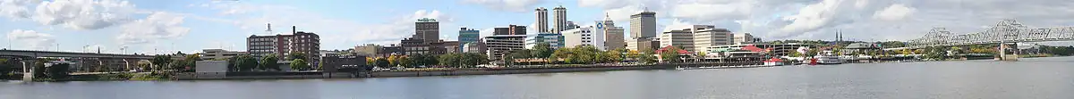 Peoria was named after the Peoria tribe, a member of the Illinois Confederation. The original meaning of the word is uncertain.[15] A 21st-century proposal suggests a derivation from a Proto-Algonquian word meaning "to dream with the help of a manitou."[16] Peoria was incorporated as a village on March 11, 1835. The city did not have a mayor, though they had a village president, Rudolphus Rouse, who served from 1835 to 1836. The first Chief of Police, John B Lishk, was appointed in 1837. The city was incorporated on April 21, 1845. This was the end of a village president and the start of the mayoral system, with the first mayor being William Hale.[17][18][19] Peoria, Arizona, a suburb of Phoenix, was named after Peoria, Illinois because the two men who founded it in 1890 − Joseph B. Greenhut and Deloss S. Brown − wished to name it after their hometown.[20]