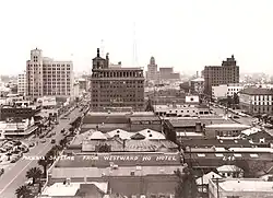 After Arizona was granted statehood in 1912, the growth of Phoenix exploded from the downtown epicenter. By the 1930s, a modern skyline composed of various commercial buildings began to take shape and Downtown was a dense, compact and pedestrian friendly city characterized by Victorian buildings and ground-floor retail.[5] Post-World War II building focused heavily on suburb creation, and this, combined with the rise of the automobile and evaporative cooling, resulted in large population relocation outside of Downtown.[6]