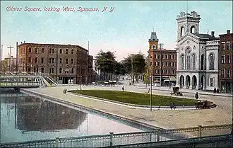 Clinton Square first came into existence in the early 19th century when roadways from north and south joined in downtown Syracuse. By the mid-19th century, the construction of Erie Canal further transformed the busy intersection into the center of commerce and trade in Central New York.[6]