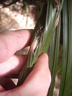 This species inhabits native forest particularly forest on the coast. The larvae of this species feed on the berries of Nikau palm trees.[4] They spin the berries together with silk threads and when fully mature the larvae travel down to the trunk of the palm to pupate there in white-brown cocoons.[4]
