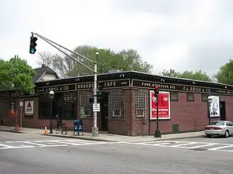Doyle's Cafe was a pub located on Washington Street in the Jamaica Plain neighborhood of Boston, Massachusetts, United States. Doyle's Cafe was established in 1882 and is located near the Samuel Adams brewery. Its close proximity to the brewery afforded Doyle's the unique opportunity to serve new or experimental Samuel Adams beers.[1] It is also where Samuel Adams Boston Lager was first put on tap. Throughout its history, Doyle's was known as a favorite watering hole for both local and national politicians. On St. Patrick's Day in 1988, Senator Ted Kennedy helped dedicate a new room at the location to his maternal grandfather, John F. Fitzgerald.[2]
