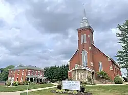 Also in 1836, the Village of Doylestown established its first Board of Education. The board purchased a tract of land from Frederick at what is now the intersection of Portage and Gates streets with the intention of establishing a school. A decade later the wood-frame school was replaced with a more permanent brick building which would be expanded vertically as the village grew through the 1850s.[5]: 28