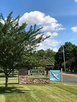 Central Park was dedicated and opened to the public on June 10, 1995.[3] The land was purchased for $3.7 million from a developer in 1991.[4] The land was originally owned by the local Delaware Valley University.[3] The park was planned under the guidance of the Central Park and Facilities Planning Committee, chaired by John T. Carson Jr.[4] The land was considered an ideal site for a park due to its proximity to a township building located next door on Wells road. This would allow for ease of connection to already existing municipal water, sewage, and electricity lines, decreasing both time and building costs.[4] Since its inception, planners wanted to ensure that the park had both passive and active areas while minimally changing the existing landscape.[5] In 1994, the township received a DCA grant of $100,000 for park development.[5] By 1994, the parking lots, tennis courts, basketball courts, and walking trail were completed.[5]