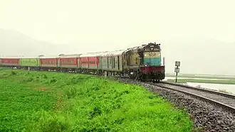 ![]() Indore–Guwahati Express (LHB) with Ratlam ALCo WDM-3A at Deepor Beel Lake | |