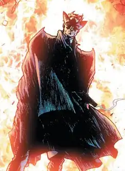 Years later, Doctor Hurt is working with the Black Glove when they decide to target Batman and his allies.[5] Hurt is presumed dead after a helicopter explosion, but survives and resurfaces in Mexico.[6] With Joker working as an unreliable ally, Hurt releases a drug into Gotham's air to drive its citizens insane. Hurt shoots Dick Grayson in the head and attempts to force Damian Wayne to swear allegiance to him. However, Dick survives and eventually recovers while Batman defeats Hurt.[7][8] Hurt escapes before the Joker subdues him.[9]