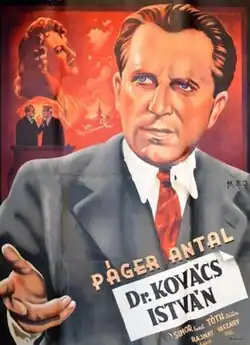 Dr. Kovács István is a 1942 Hungarian drama film directed by Viktor Bánky and starring Antal Páger, Erzsi Simor and Júlia Tóth. When his new wife from a peasant background is not accepted by his colleagues, a University Professor resigns his post and returns home to his rural village. After receiving popular support, he is returned to his position by the Minister of Education. The film was made during the Second World War and reflects the nationalist ideology of the country's government. The film's views show the influence of Hungarian Turanism.[1] The film was popular with audiences on its release, and Bánky released a second nationalist film Changing the Guard the same year.[2]