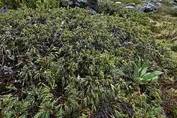 Dracophyllum kirkii is a species of shrub endemic to the South Island of New Zealand. It was first described by Sven Berggren in 1877 and gets the specific epithet kirkii after the New Zealand botanist Thomas Kirk. In the heath family Ericaceae, it inhabits mountain slopes and bluffs and reaches a height of just 20โ140 cm (8โ55 in).[2][3] A 2017 assessment using the New Zealand Threat Classification System classified it as "Not Threatened", giving it an estimated population of more than 100,000.[1]
