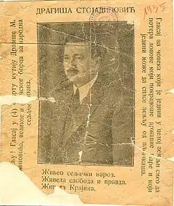Dragiša M. Stojadinović (Serbian Cyrillic: Драгиша Стојадиновић, 1886–1968), known by his nom de guerre Krajinac (Крајинац), was a Serbian soldier, lawyer, politician, photographer and filmmaker.[1]