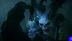 BioWare's Austin studio (the developer of Star Wars: The Old Republic) developed The Descent; work began after their next project, Shadow Realms, was cancelled.[7] BioWare staff described the pack's Deep Roads setting as dark and dangerous, and yet full of mysteries. Writer Courtney Woods noted that the further the player descends on their journey, the more secrets they will uncover and the more questions they will have about the lore of the Dragon Age universe.[4] The Descent marks the first major appearance of the Darkspawn hordes in Inquisition. The palette for the Darkspawn is described as diverse: from an art direction standpoint, the Darkspawn are designed with a demonic-looking visage and their armor is pointy and aggressive in shape.[4] The pack is intended to invoke a sense of exploration and the fantasy that the player is going somewhere no one else had been for a very long time, as the Darkspawn had destroyed dwarven society generations past and took over the ruins of their once thriving civilization.[4]