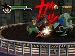 The game has two styles of gameplay to work with. The Adventure Mode retells the events within both the Red Ribbon Army and early Demon King Piccolo story arcs. In this mode game functions as arcade style beat'em up and platformer, where players in the role of protagonist Goku, run from point A to point B fighting various enemies and bosses and hopping gaps and ledges.[2][3] Players can use simple and melee type of attacks or use the Kamehameha battle. Each enemy the player takes out will earn them health, powerups, or zeni which can be used in the shop.[4] The game uses a lock-on system which allows players to deliver powerful connecting attacks or to grab a device to cross hard to pass places.[5] The World Tournament lets players battle as one of the available fighter in the Adventure Mode in a World Martial Arts Tournament style VS fighter.[6] Other modes include the shop, where players can buy upgrades, in game music, movies and collectables,[7] and the gallery where player can view their earned collectables, music, and movies.