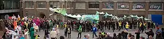 Typically, the dragon is built by the entire first year architecture class as a bonding and team-building exercise.[2] Although the parade takes place over a few hours, the event requires at least six weeks of planning and preparation beforehand.[2] The event is fully student-funded, primarily through selling commemorative t-shirts.[2]