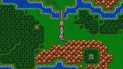 Dragon Quest XI continues the gameplay of previous games in the series, in which the player explores worlds and fights against various monsters, including the ability to explore high areas.[1] The Nintendo 3DS version features a different style to the other versions, showcasing 3D graphics on the top screen and 16-bit styled sprites on the bottom screen. Outside of battle, the player can freely toggle between the 3D and 2D graphical styles.[2][3] Like with Dragon Quest IX, on land, the game's battle system features no random encounters and shows all enemies on the overworld. The battle system also adds a free-form camera option inspired by the MMORPG Dragon Quest X that allows the player to move around the enclosed battlefield, although it is purely visual and provides no other benefits to gameplay.[4][5][6]