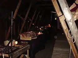 The village contained 4 long houses, a smithy, a bakery, a healer's hut, toilet facilities, wash house, carpentry shop and a grand temple. All in all, there were 12 buildings with 320 indoor sleeping places and a floor area of over 500 square meters. Cinderhill was very much a work in progress, and there were many ideas for other aspects that were not realized.
