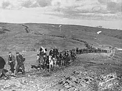 Initially, the headquarters of Keserović's forces was in the village of Kupci, between Kruševac and Brus,[14] and later in the village of Kriva Reka, Brus, on Kopaonik. In August 1942, Mihailović issued his first orders that took a "definite position against the occupying powers".[15] These orders were British-inspired and included orders to prepare to sabotage the railways in occupied Serbia. After these orders, Keserović issued a general direction urging peasants in his area of operations to hide grain, livestock, and fodder from the occupying forces.[16] In August 1942, the joint Axis forces of German and Bulgarian troops attacked Major Keserović's Chetniks on Kopaonik and captured nine members of his headquarters; three of them were members of the British mission and were executed when they were leaving the village of Kriva Reka.[17] In 1942, he maintained communication with Nikolaj Velimirović.[18] Shortly before Italian capitulation in September 1943, Keserović raided two German railway transports and pushed back German attacks to Mihailović's headquarters.[19]