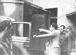 In his area of responsibility in occupied Serbia, Keserović used terror tactics against Partisans, their families, and sympathizers, drawing up lists of people and ordering them to be killed. To carry out these killings, special units known as "black trojkas" were trained and deployed, often using knives to kill their victims.[51] Orders for anti-partisan terror came directly from Draža Mihailović.[52] According to Vojislav Janković, judge from Kruševac, Keserović and chief of Kruševac branch of Special Police made a list of over 150 people from Kruševac to be executed on 13 October 1944, however this massacre was prevented because of Red Army's liberation of the city.[53]