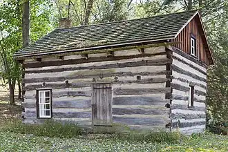 Drake Log Cabin is a historic log cabin located at Apollo, Armstrong County, Pennsylvania. It was built about 1816, and is a 1+1⁄2-story, one-room, rectangular log cabin measuring 18 feet by 22 feet. It has a gable roof and interior end stone chimney. The cabin was restored in 1971 and opened to the public by its owner, the Apollo Area Historical Society.[2]