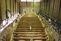 Copies of Viking ships are usually based on interpretations of archaeological material, but in the construction of Draken Harald Hårfagre an alternative method was used. It was decided to begin with the living tradition of Norwegian boatbuilding, with roots that can be traced directly to the Viking Age.[4][5] The foremost Norwegian traditional boat builders are involved in the project.[6] Their knowledge of traditional boatbuilding is supplemented with the results of investigations carried out on archaeological material, source material in Old Norse literature, literature from the same period from foreign sources, iconographic material, etc. The goal of the project is to recreate in this manner an oceangoing warship of 50 oars taken right out of the Norse sagas.
