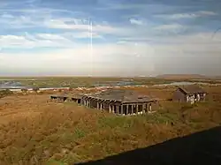 After the drawbridges were removed and most of the residents had left, the San Jose Mercury News for years incorrectly reported that the town was a ghost town and that the residents left valuables behind. As a result, the people still living there had their homes vandalized.[5] The town's last resident is said to have left in 1979, and Drawbridge is considered to be the San Francisco Bay Area's only ghost town.[3] Drawbridge is now part of the Don Edwards San Francisco Bay National Wildlife Refuge[6][7] and is no longer open to the public due to restoration efforts, though it can still briefly be viewed from Altamont Corridor Express, Capitol Corridor, and Coast Starlight trains.