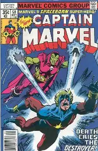 Steve Englehart (w), Al Milgrom (p). "Death Throws!" Captain Marvel, no. 44 (May 1976). Marvel Comics. - ^ Doug Moench (w), Pat Broderick (p), Bob McLeod (i). "A Destroyer--Denied!" Captain Marvel, no. 58 (September 1978). Marvel Comics.