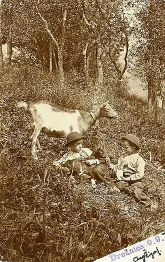 The Drežnica is a breed originating in northwestern Slovenia, on the area of Posočje, specifically places Drežnica and Bovec. The breed got its name after the village Drežnica,[5] while some people call these goats Bovec goat.[4] Today the Drežnica goat is the most widespread on the area of its origin, mostly around Bovec and Drežnica, in Tolmin[6] and in smaller herds also elsewhere in Slovenia.[3]