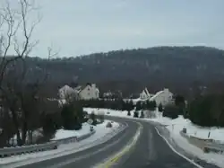 Dreahook is an unincorporated community in Readington Township in Hunterdon County, in the U.S. state of New Jersey[2] at the intersection of CR-620/Dreahook Rd and CR 523. The name is a corruption of Driehoek (drie-three and hoek-corner, as in corners of a triangle), which is the Dutch word for triangle.[3] It was likely named for the triangle created by the settlement in its relation to the early roads to Flemington, Whitehouse Station, Readington Village and Pleasant Run, which have since been rerouted.[4] Dreahook Creek and Holland Brook both pass through the area of the former village. Dreahook village once had blacksmith shop, a school and a store. Settlers farmed the land here because of the rich soil along the base of Cushetunk Mountain.[4] There are still numerous farms in the area, including the Readington River Buffalo Farm between Dreahook and Stanton.