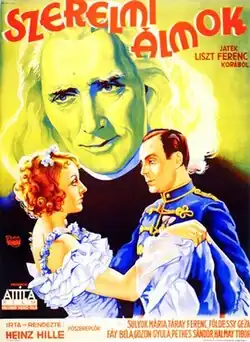 Dream Love (Hungarian: Szerelmi álmok) is a 1935 Hungarian historical romantic drama film directed by Heinz Hille and starring Ferenc Táray, Mária Sulyok and Giza Báthory.[1] It was shot at the Hunnia Studios in Budapest and on location in Tata. The film's sets were designed by the art director Márton Vincze. It premiered at the Venice Film Festival in August before going on general release in Hungary the following month. A separate German version Dreams of Love was also produced.