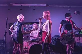Dream Wife is an English-Icelandic, London-based band, whose sound is a mixture of punk rock, pop music and indie rock.[3][4][5] The band consists of Rakel Mjöll (lead vocals), Alice Go (guitar, vocals), Bella Podpadec (bass, vocals), and Alex Paveley on drums.[6][7][8]
