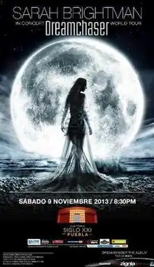 The Dreamchaser World Tour was the fifth worldwide concert tour by English soprano singer Sarah Brightman in support of her album Dreamchaser (2013).[1] The North American tour had been planned to begin in early 2013, but all dates were rescheduled for late 2013. The tour was supposed to be Brightman's final concert tour before her trip into space (which the Dreamchaser album is based on) but the trip was later cancelled for personal reasons.[2]