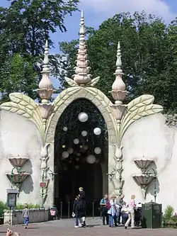 Due to the ride's popularity, the original entry was moved from the thematic hall to a standard queue line. The original entry hall is still in use for special events. The ride starts with some animatronics. Integration between the scenes consists of scarcely lit tunnels with ambient music. The ride contains 48 fairies, 10 trolls, 38 animals, 1 million flowers, 1.5 million plants and 3.8 million leaves.[4]