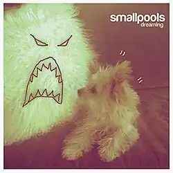 Guitarist Mike Kamerman and vocalist Sean Scanlon, both New Jersey natives, had been collaborating since 2007. They moved to Los Angeles in 2011 to further their music career, where they met bassist Joe Intile and drummer Beau Kuther, both from Oregon. Smallpools was officially formed in August 2012.[1] They soon began working with L.A.-based production trio Captain Cuts, with whom they wrote and recorded "Dreaming". Manager Greg Federspiel's dog, Jax, graces the cover art of the "Dreaming" single; it was a random photo Scanlon had taken on his phone and decided to use for it.[2]