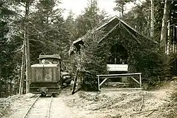 At the upper terminus of the electric tramway, the goods were reloaded onto the narrow-gauge waggons on the light railway line. These could be hauled upwards on a winch-operated single-track incline car to the military light railway station on the square in front of the pilgrimage church in Drei-Ähren.