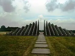 Within the framework of the regional park initiative, a sculpture designed by the landscape architects Ipach and Dreisbusch was built north of Dreieichenhain and is part of the regional park route. This work, called the Stangenpyramide (Post Pyramid), is made up of 450 bonded round wooden posts, each 24 cm (9.4 in) in diameter. The sculpture is built in two sections and is accessible on foot. It forms a sightline with the Taunus and Frankfurt’s skyline.[6]