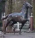 Surrounding the "Erlfeld" is a horse racing track, 850 meters in length. It is mainly used for the annual horse derby (see also events). Each August the local horse race association (Rennverein Drensteinfurt) has this race which is visited by some ten thousand people. In 1993 the association raised a monument for equestrian sports. The bronze statue displays a horse and is situated on the Mühlenstraße (millstreet).