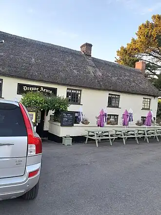 In 1919 the Drewe Arms was taken over by Mabel Mudge, who ran the public house for 75 years before retirement, giving her the record of the longest-serving landlady in the UK.[4] The pub was subsequently a Whitbread pub, an Enterprise Inns pub, and a Stonegate Inns pub, but successive landlords struggled to make it pay.[5][6]