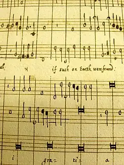 Subsequent owners are known from their inscriptions on the manuscript's initial pages. The first is signed "Dr. Allcock" who Jerry C. Persons identifies as the organist and composer John Alcock (1715–1806).[9] It reads: "All the following Music was wrote out of the Vatican (or Pope's Library) at Rome." This is followed by a statement signed by "Rev. John Parker": "I do not find any authority for this assertion by Dr. Alcock.".[10] Persons identifies Parker as the vicar of St. George's, London, who "copied out madrigals for himself."[9]