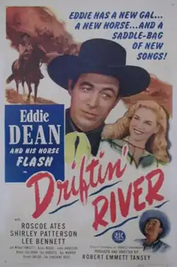 Driftin' River is a 1946 American Western film directed by Robert Emmett Tansey and written by Frances Kavanaugh. The film stars Eddie Dean, Roscoe Ates, Shirley Patterson, Lee Bennett, William Fawcett, Dennis Moore, Lottie Harrison, Robert Callahan, Lee Roberts, Donald Murphy and Forrest Taylor. The film was released on October 1, 1946, by Producers Releasing Corporation.[1][2][3]