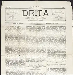 Drita (Drita meaning "the light" in English) is an Albanian literary magazine published by the Association of the Young Modern Artists of Albania (Albanian: Shoqëria e Artistëve të Rinj Modernë).[1] Drita was one of the first magazines in the Albanian language. It has been published for 127 years with some interruptions.[2]