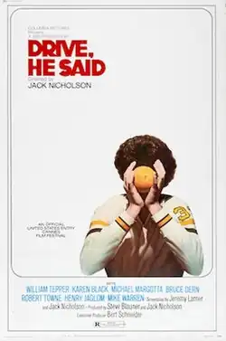 Drive, He Said is a 1971 American sports comedy-drama film directed by Jack Nicholson, in his directorial debut, and starring William Tepper, Karen Black, Bruce Dern, Robert Towne and Henry Jaglom. Based on the 1964 novel of the same name by Jeremy Larner, the film follows a disenchanted college basketball player who is having an affair with a professor's wife, as well as dealing with his counterculture roommate's preoccupation with avoiding the draft in the Vietnam War. The film features supporting performances by David Ogden Stiers, Cindy Williams, and Michael Warren. The screenplay was adapted by Larner and Nicholson, and included uncredited contributions from Terrence Malick.[2]