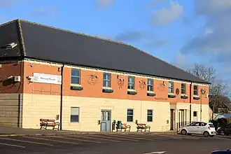 In the mid-1990s, it was decided to demolish the old civic hall, and to redevelop the north side of Dronfield Civic Centre to create a more substantial community events venue.[13][14] The new building was designed in the neoclassical style, built in red brick with stone dressings and was officially opened on 14 December 1999. The design involved an asymmetrical main frontage of seven bays facing onto Dronfield Civic Centre. The fifth bay featured a portico formed by two pairs of Doric order columns supporting an entablature. The ground floor was faced in sandstone and most of the bays on both floors were fenestrated with casement windows. Internally, the building contained offices for the town council and a council chamber, along with a large assembly hall capable of seating up to 210 people.[15] The assembly hall subsequently became a popular venue for concerts and theatrical performances.[16][17][18]