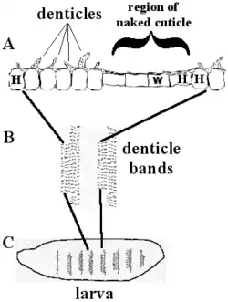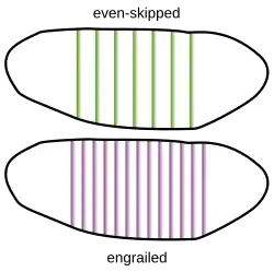 - ^ Bejsovec A, Wieschaus E (1993). "Segment polarity gene interactions modulate epidermal patterning in Drosophila embryos". Development. 119 (2): 501–517. doi:10.1242/dev.119.2.501. PMID 8287799.