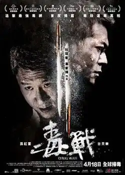 Drug War (simplified Chinese: 毒战; traditional Chinese: 毒戰) is a 2012 action thriller film[4] directed and produced by Johnnie To. A Chinese-Hong Kong co-production, the film stars Sun Honglei as Police Captain Zhang, who partners with a drug lord named Timmy Choi (Louis Koo) after Choi is arrested. To avoid the death penalty, Choi agrees to reveal information about his partners' methamphetamine ring. Zhang starts to harbor doubts about Choi's honesty as the police begin to take on the drug ring.