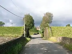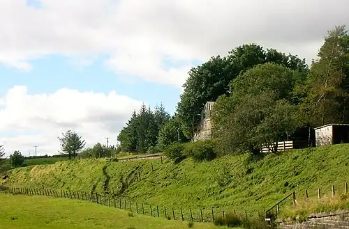 The nominal junction between the Caledonian Railway and the Glasgow and South Western Railway was at the county boundary at Loudounhill Station. The closed line was used to store hundreds of damaged railway waggons that were awaiting repair.[5]
