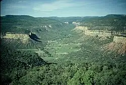 The Dry Mesa Dinosaur Quarry is situated in southwestern Colorado, United States, near the town of Delta. Its geology forms a part of the Morrison Formation and has famously yielded a great diversity of animal remains from the Jurassic Period, among them Ceratosaurus, Supersaurus, and Torvosaurus. The quarry is found within the Uncompahgre National Forest.