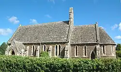 The Church of England parish church of Saint Helen is a 13th-century-style Gothic Revival building designed by J.B. Clacy[3] of Reading[4] and built in 1855.[1][5] St. Helen's has lancet windows, a nave, chancel, rib-vaulted apse[3] and a bellcote on the gable above the chancel arch.[5] St. Helen's was made a separate ecclesiastical parish in 1867,[1] but was united in a single benefice with St. Peter's, Wootton in 2000.[6]