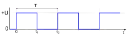 The pulse duration of the laser is measured in milliseconds (ms), and is important for correct detection by target or camera systems. Some systems have user-adjustable pulse lengths.[23] With purely electromechanical dryfire cartridges the duration of the pulse is often mechanically controlled by the firing pin and typically lies around 100 ms, while some other systems have digitally controlled pulses that are shorter, for example 60 ms[24] or 1 ms.[25] These may be required for camera or target systems to be able to correctly detect single shots, and stands in contrast to laser systems that emit a continuous laser beam as long as the trigger is held, such as the SIRT 110. There are also aftermarket conversion kits or pulse modules to convert some laser systems to emit a distinct pulse for use with particular target systems. For example, one manufacturer[26][27] offers an aftermarket module that is required for use with their target systems, and has a stated pulse duration of 65 ms.[28] Another manufacturer[29] offers a pulse module that emits a 30 ms pulse with each trigger pull, and claims that it works with target systems from both LASR, Laser Ammo and LaserLyte. Laser pistols used in modern pentathlon have been standardised since 2014 to having a pulse length of 15.6 ms. Before 2014 the pulse length was standardised to 25.2 ms.[30] Laser systems for use with simulated recoil have a very short pulse[31] (in the order of magnitude 6-8 milliseconds[32]) to ensure that the point of impact is not affected too much by the movement in the firearm. This can require the use of high-speed cameras (for example 200 fps), since many ordinary web and phone cameras don't have a quick enough frame rate.[33]