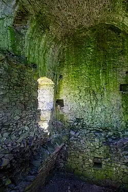 The castle belonged to the Scotts of Dryhope, and a daughter of the House, Mary Scott was known as the "Flower of Yarrow" and was also an ancestor of Sir Walter Scott. Mary was given in marriage to Wat Scott of Kirkhope, a notorious Border Reiver. The property passed to Wat Scott's family, the Scotts of Harden, and Scott took possession of Dryhope following his marriage. However, in 1592, Wat Scott fell out of favour with King James VI due to his association with Francis Stewart, 1st Earl of Bothwell, and involvement in an attack on Falkland Palace. King James levied an army and proceeded through the forest and slighted many houses of his opponents. Wat Scott did not get off lightly and Dryhope was amongst Scott of Harden's fortalices that were slighted.[2] The tower seems to have been rebuilt by 1613. The castle fell into terminal decay in the latter part of the 17th century and was acquired by the senior branch of the Scotts, the Dukes of Buccleuch.