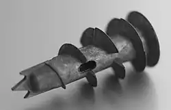 A drywall anchor, also known as a wall anchor, is an insert that, combined with the appropriate screw, can create a strong mount anywhere on a drywall panel or similar hollow wall.[1] A drywall anchor goes between the screw and the drywall, gripping the drywall much more effectively than a screw would.[2] Some have toggle arms that either drop behind the wall or expand within the cavity. Others include wide threads that carve out grooves in the wall for traction. All drywall anchors are designed to create a strong mount point by distributing the applied load over an increased surface area.