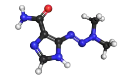 Dacarbazine, also known as imidazole carboxamide and sold under the brand name DTIC-Dome, is a chemotherapy medication used in the treatment of melanoma and Hodgkin's lymphoma.[2] For Hodgkin's lymphoma, it is often used together with vinblastine, bleomycin, and doxorubicin.[2] It is given by injection into a vein.[2]